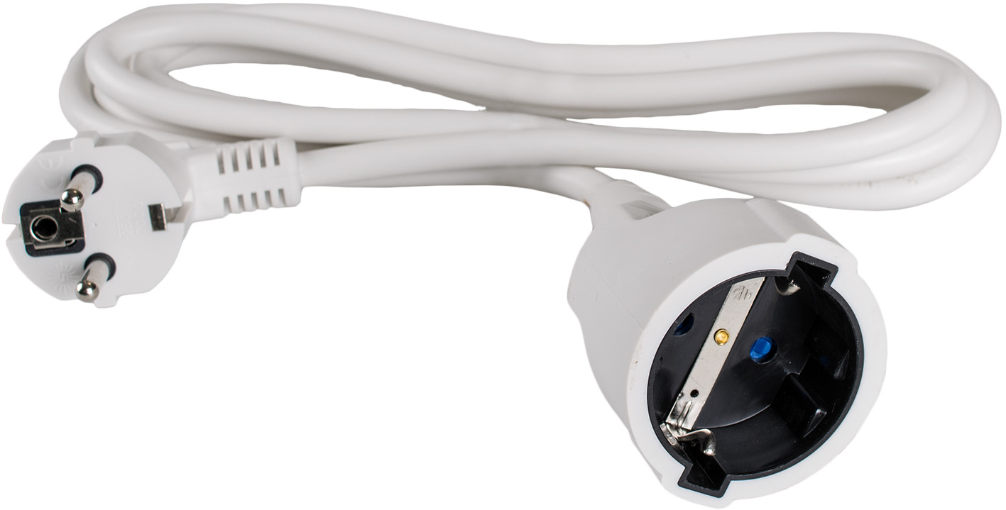 Prolongación de 4m bipolar con toma de tierra lateral 2Polos, 16A 250V, con cable 3G1,5. Potencia máxima admisible 3680W, con pozo de protección, base aérea inyectada, espigas de 4,8mm de diámetro.