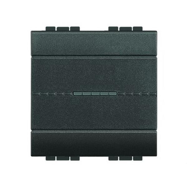 Conmutador iluminable. Mecanismos axiales. 16 AX 250 V. Conexión automáticas. Antracita. 2 módulos. Livinglight. Mecanismos de iluminación. Living light: Una única serie con tres acabados para las teclas: blanco, tech y antracita. Tres diseños de placas: redonda, cuadrada y AIR. Todo perfectamente intercambiable. Forma y función unidos en una estética implecable. Una combinación elegante de formas, colores, materiales y superficies para satisfacer todos los gustos estéticos: minimalista, sofisticado, tradicional y ostentoso.