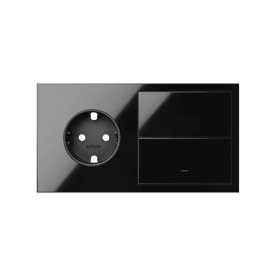 Kit frontal para 2 elementos con 1 base de enchufe schuko y 1 tecla individual negro Simon 100. Al igual que todos los productos de la serie Simon 100, el kit front para 2 elementos con 1 base de enchufe schuko y 1 tecla individual destaca por la sencillez de su instalación, siendo muy cómodo, intuitivo y funcional. Además, presenta una apariencia elegante y moderna, con líneas sutiles y acabados en color negro que le aportan un aspecto sofisticado y actual. Este kit consta de 2 elementos: una base de enchufe schuko con una intensidad de hasta 16A y un conmutador para la tecla con una intensidad de 10AX. El funcionamiento de la tecla es de tipo pulsador-basculante, por lo que las teclas retornan siempre a una misma posición tras su accionamiento, contribuyendo a una mejor estética del producto. Apto para empotrar, su simple instalación se debe al tipo de embornamiento por corte (1 click®), que resulta increíblemente rápido y sencillo, reduciendo considerablemente el tiempo de instalación.