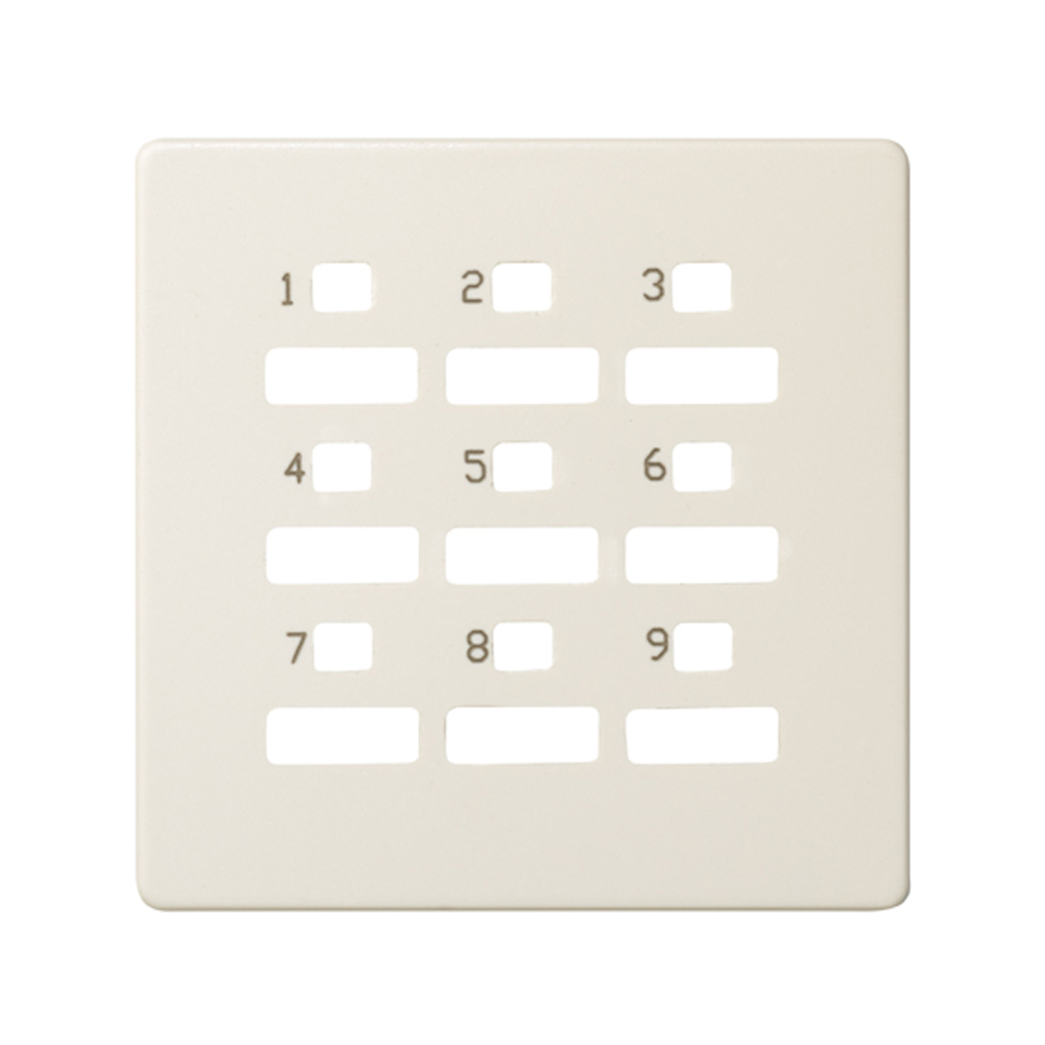 Placa para selector de avisos de 9 zonas marfil Simon 82. La placa para selector de avisos de 9 zonas de la serie Simon 82 está disponible en color marfil entre otros dos acabados diferentes. Nuestros expertos recomiendan que el marco se elija coincidiendo en color con el zócalo de la placa que se haya elegido. La pieza presenta unas medidas de 55x55mm y es totalmente apta para colocar en cualquier superficie o empotrar. Y gracias a su fabricación en material termoplástico, se logra ofrecer las máximas garantías de funcionamiento a temperaturas comprendidas entre los 5 y 40º, soportando incluso las máximas de -25 y 50º. Para un buen cuidado de esta placa, se aconseja utilizar un paño suave humedecido en agua y jabón. Jamás utilice paños o limpiadores abrasivos que lleven cloro, pues podrían dañar el resultado estético de la pieza.