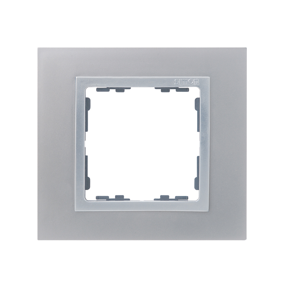 Marco para 1 elemento aluminio interior aluminio Simon 82 Nature. Simon 82 Nature ofrece el marco para un elemento de la gama metal y con acabado en aluminio, se recomienda escoger el acabado también en aluminio para las teclas y tapas. Es apto para empotrar y gracias a que pertenece a la serie Simon 82 Nature que tiene compatibilidad con los mecanismos de la serie Simon 77 podrás disfrutar de las ventajas de realizar una instalación del elemento que desees en tan solo dos pasos. Sin necesidad de pelar cables o trenzarlos y con el añadido de no utilizar ninguna herramienta adicional en el proceso. Transforma tu vivienda gracias a la sobriedad de la estética que ofrece el acabado en metal, moderno y original. Con diferentes texturas como el inox, el plomo, el óxido o el acero que harán que combines la innovación y la estética de los elementos, haciendo así honor al reclamo de la colección que disfrutar de la materia en estado puro. Inspirada en la acción de los elementos sobre la materia.