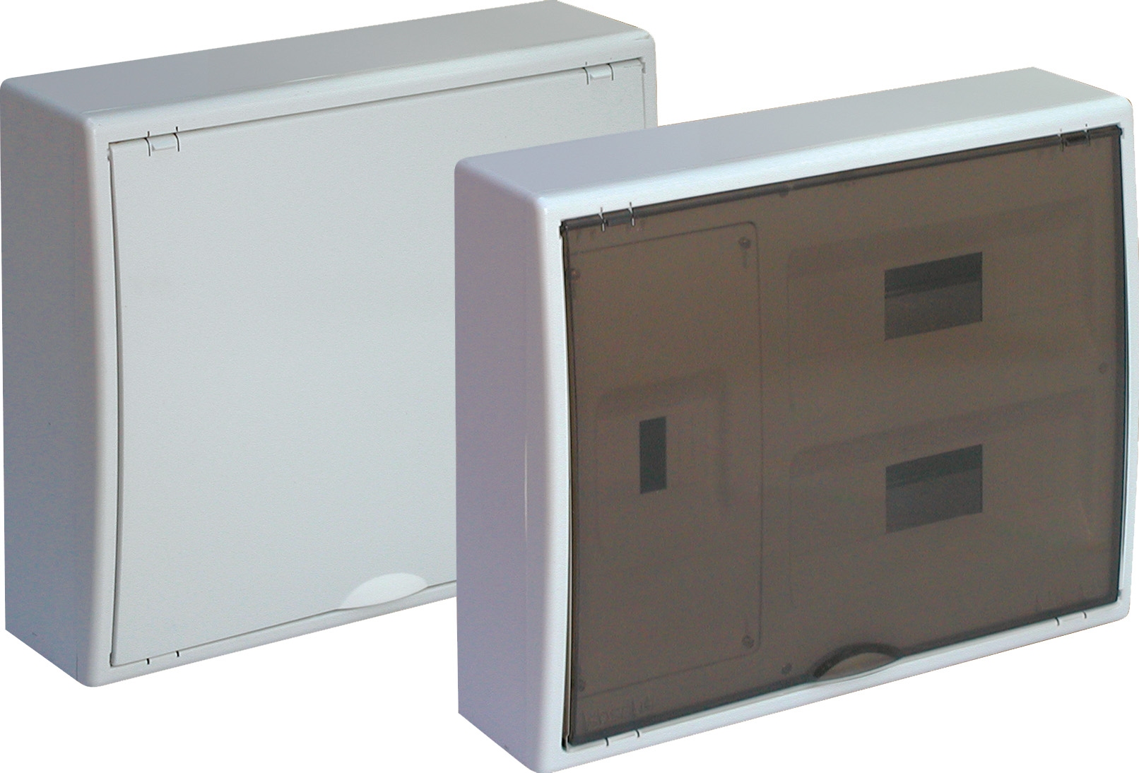 8220PF - Caja de distribución de superficie de 24 elementos + 4 precintables 423x353x104mm caja y marco blancos y puerta fumé